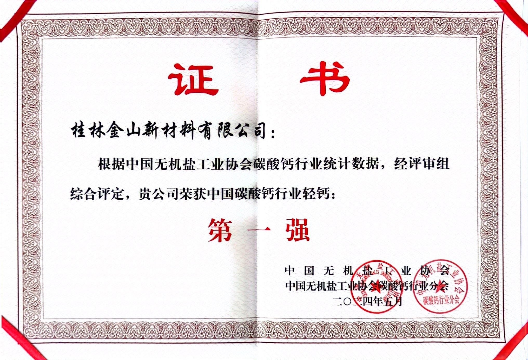 喜報(bào)!!我公司喜獲全國碳酸鈣行業(yè)輕鈣第一強(qiáng)、納米鈣四強(qiáng)!