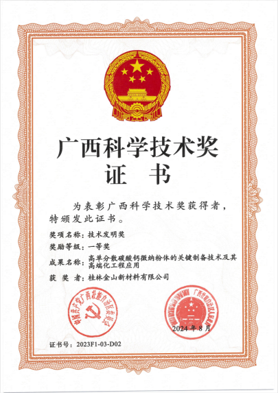 “中國碳酸鈣行業(yè)納米鈣第三強(qiáng)”